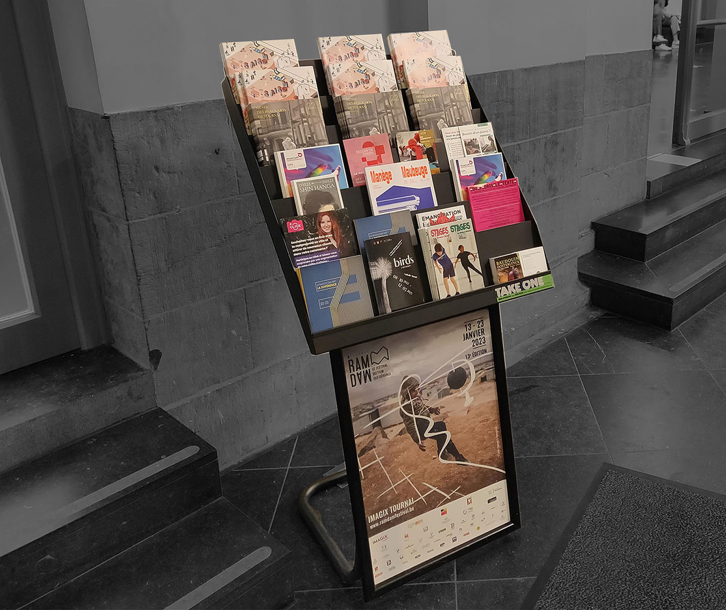 Plus de 1000 points de distribution en Belgique. ARTEMIA a installé dans des lieux culturels ciblés (maisons de la culture, musées, offices de tourisme, salles de spectacles, cinémas, restaurants et cafés « branchés », …), des présentoirs dans lesquels vos dépliants sont mis en évidence. Ce réseau est élargi à des lieux de grand passage (centres commerciaux, piscines, halls de sports, …) afin que vos dépliants touchent un public très large.